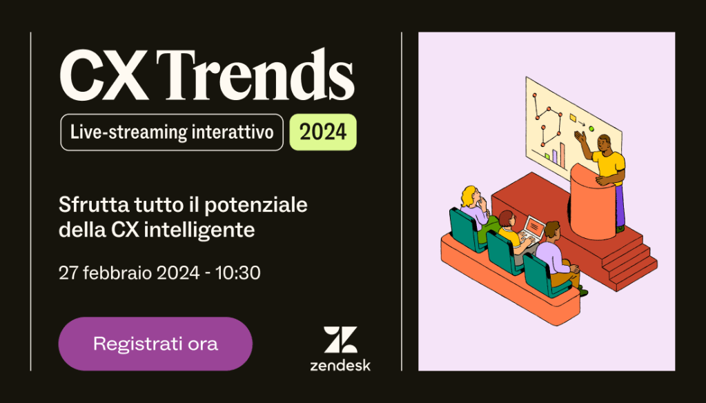 - Un’opportunità unica di ascoltare le ultime novità di Zendesk e capire come continuare a far vivere la miglior customer experience ai tuoi clienti.